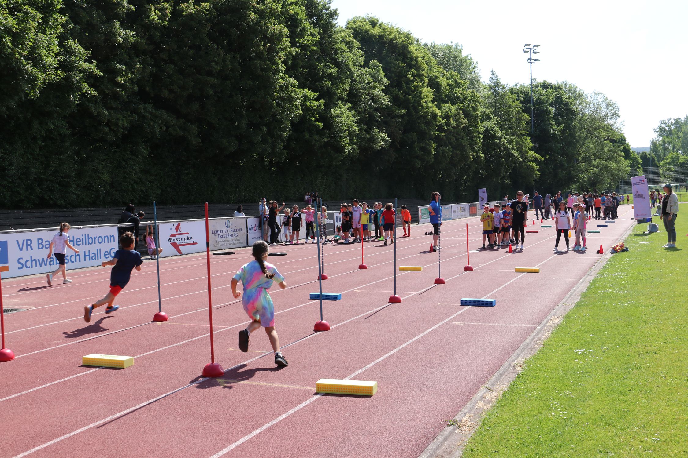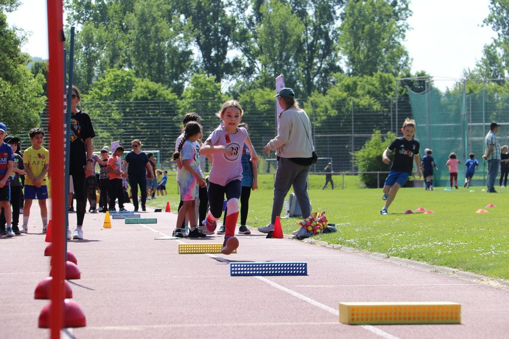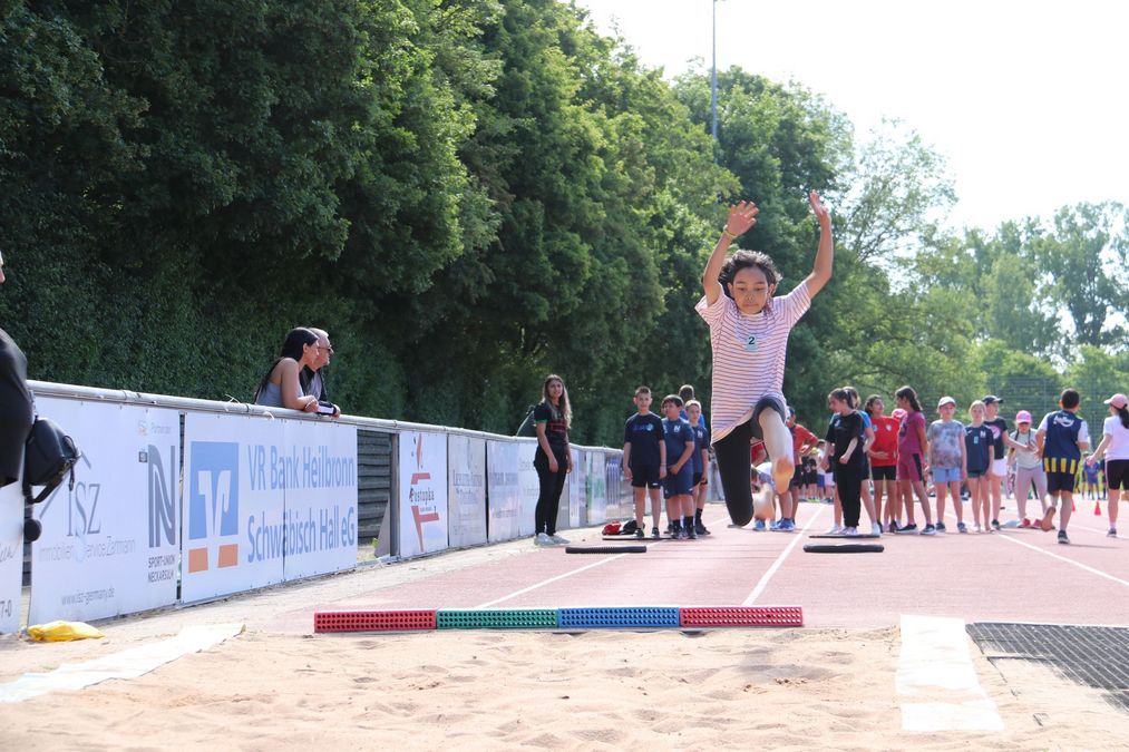 Am Donnerstag, den 15.05. war die Johannes-Häußler-Schule GSWRS in Neckarsulm an der Reihe. Bei strahlend blauem Himmel lernten die rund 260 Schüler:innen der Schule die Grunddisziplinen Laufen, Springen und Werfen anhand der acht Stationen kennen. Gleichzeitig wurden an vier der acht Stationen die Bundesjugendspiele durchgeführt. Die Sportunion Neckarsulm unterstützte die Veranstaltung und durch alle Helfer:innen, Lehrkräfte und Zuschauer:innen wurde der Vormittag für die Grundschule zu einem unvergesslichen Ereignis.