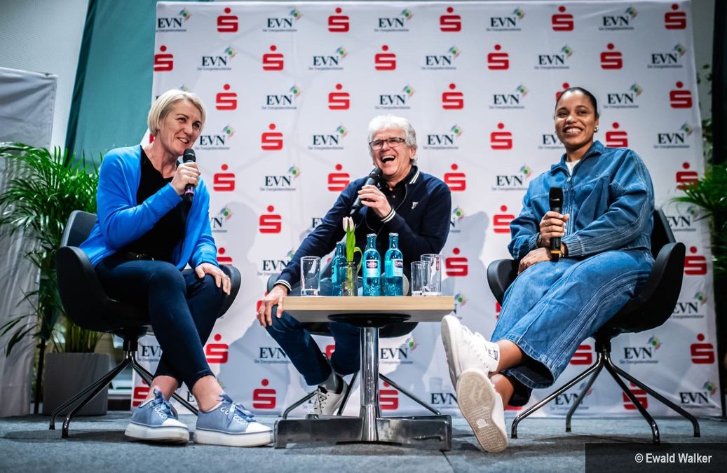 Die deutschen Kugelstoßerinnen haben sportliches Gewicht und Geschichten zu erzählen im Dialog der Generationen. Insgesamt zwölf stehen unter den besten 30 der ewigen Weltbestenliste, fünf von ihnen holten Olympiagold. Kumbernuss und Ogunleye diskutieren lebhaft über Erfolge, Hintergründe und auch die Entwicklungen in ihrer Disziplin. 28 Jahre liegen zwischen ihren Olympiasiegen, ein Generationsunterschied.