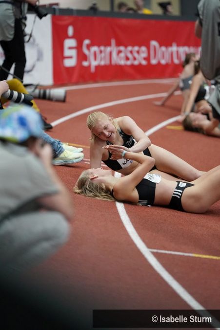 Silber und Bronze gehen an Athletinnen aus Baden-Württemberg. Elena Burkard (LG farbtex Nordschwarzwald) hängt sich von Beginn an an die Fersen von Lea Meyer (VfL Löningen), die lange Zeit führt. Eingangs der letzten Runde drückt sie dann aber aufs Tempo und wird am Ende nur noch von Majtie Kolberg (LG Kreis Ahrweiler) überspurtet. 4:13,78 Minuten bedeuten eine deutliche Saisonbestleistung und den Vize-Meistertitel. Auch Jolanda Kallabis (FT 1844 Freiburg) läuft mit 4:14,52 Minuten Siasonbestleistung und holt sich die Bronze-Medaille.
