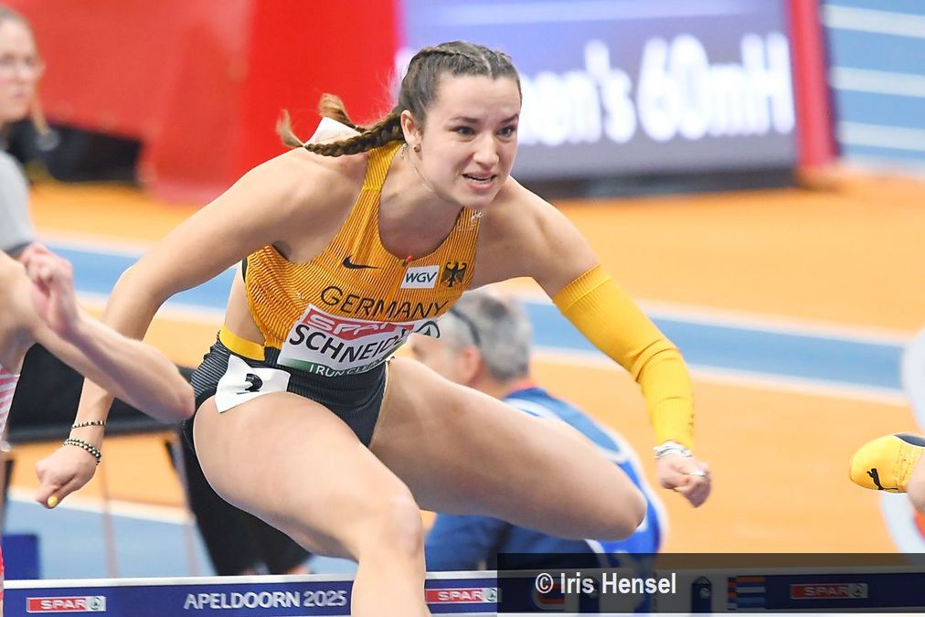 Als erste der beiden deutschen Hürdensprinterinnen war am Freitagmittag Rosina Schneider (TV Sulz) im Einsatz. Die 20-Jährige erwischte kein ganz so rundes Rennen wie noch im Vorlauf, schon der Start glückte nicht optimal. Trotzdem sprang für die U20-Europameisterin noch eine solide Zeit heraus: In 8,01 Sekunden nahm sie als Fünfte zunächst auf dem Schleuderstuhl Platz.