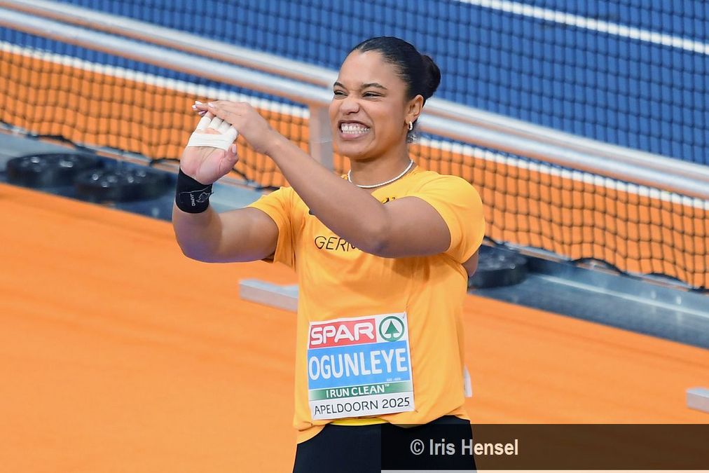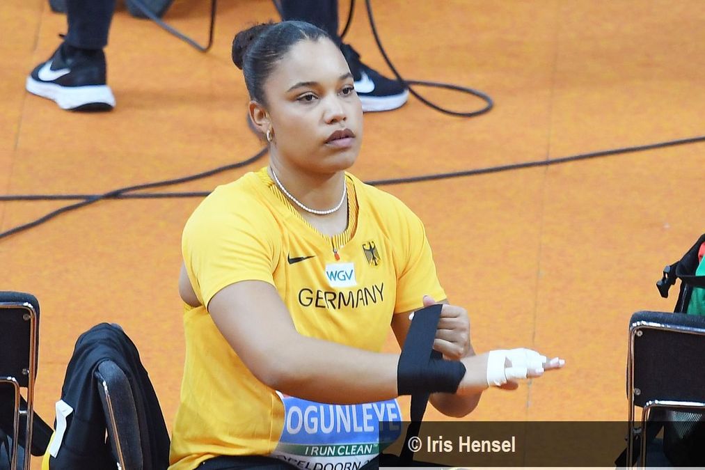 Es war ein langsames Herantasten an die Qualifikationsweite von 18,80 Meter für alle Athletinnen. Auch Yemisi Ogunleye (MTG Mannheim) tat sich zunächst ein wenig schwer, im ersten Durchgang traf sie die Kugel nicht richtig. Der zweite Versuch saß dann aber. Mit 18,95 Meter sicherte sie sich das große ‘Q’ und den direkten Einzug ins Finale. Für Alina Kenzel (VfB Stuttgart 1893) wurde es zu einer Zitterpartie. Nach einer Steigerung auf 18,31 Meter im zweiten Versuch war der dritte und letzte keine Verbesserung mehr und sie reihte sich vorläufig auf Platz sieben von Katharina Maisch (LV 90 Erzgebirge) ein. Beide mussten noch abwarten, ob eine der anderen Athletinnen doch ncoh an ihnen vorbeizog. Kurz darauf konnten sie aufatmen: Alle drei deutschen Kugelstoßerinnen schafften den Sprung ins Finale. Yemisi Ogunleye war dabei eine von nur drei Athletinnen, die die Qualifikationsweite knacken konnten.