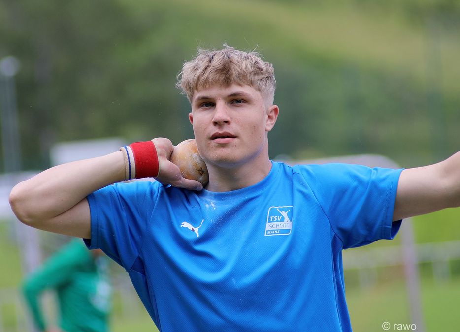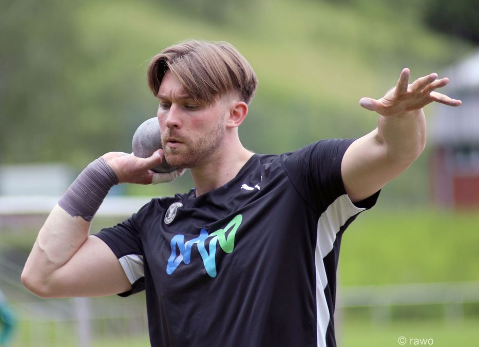 Das Wetter meinte es entgegen aller Voraussagen gut mit den Murgtälern. Nachdem im Vorjahr wegen Starkregen am Nachmittag die Veranstaltung abgebrochen werden musste, sorgten dieses Mal trotz tief hängender Wolken Sonnenschein und warme Temperaturen für gute Voraussetzungen, um Rekorde zu brechen. Simon Bayer, 2019 deutscher Freiluft- und 2023 deutscher Hallenmeister, mit einer Bestweite von 20,51 Meter, wollte im Murgtal die 20 Meter angreifen. Vor knapp drei Wochen hatte er sich in München mit 19,53 auf Platz drei der DLV-Bestenliste einsortiert. In Weisenbach zeigte er eine gute Serie mit zwei Versuchen auf 19,37 und einem auf 19,36 Meter, allerdings fehlte der „Ausrutscher nach oben“. Trotzdem steigerte er den neun Jahre alten Meetingrekord und holte sich überlegen den Sieg.