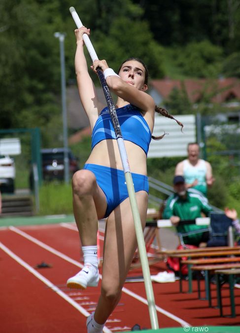 Die Wolken am Himmel hingen zwar tief im Murgtal, aber die Sieghöhen beim Stabhochsprung unter dem Motto „Erst am Himmel ist die Grenze“ ganz und gar nicht. Der mehrfache Meetinggewinner der letzten Jahre, Dennis Schober vom ASV Landau, setzte sich auch dieses Jahr wieder durch und steigerte seine Jahresbestmarke auf 5,12 Meter. Damit stellte der amtierende Welt- und Europameister der Klasse M35 den acht Jahre alten Meetingrekord ein. Den Sieg bei den Frauen holte sich Katharina Schuster (LC Hassloch) mit 3,22 Meter, nachdem in der Nacht vor dem Meeting die avisierte Carolin Hingst absagte. Bester Jugendlicher war Lukas Hell (LAZ Zweibrücken; U18) mit 4,02 Meter. Seine Vereinskameradin Ophelia Bryant (U18) übersprang 2,92 Meter, die erst 13-jährige Ronja Faber (LAZ) 2,62 Meter.