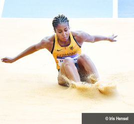 Mikaelle Assani (SCL Heel Baden-Baden) in der Weitsprung-Qualifikation; 6,24 Meter