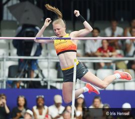 Anjuli Knäsche (VfB Stuttgart) im Stabhochsprung-Finale; Platz 14 mit 4,40 Meter