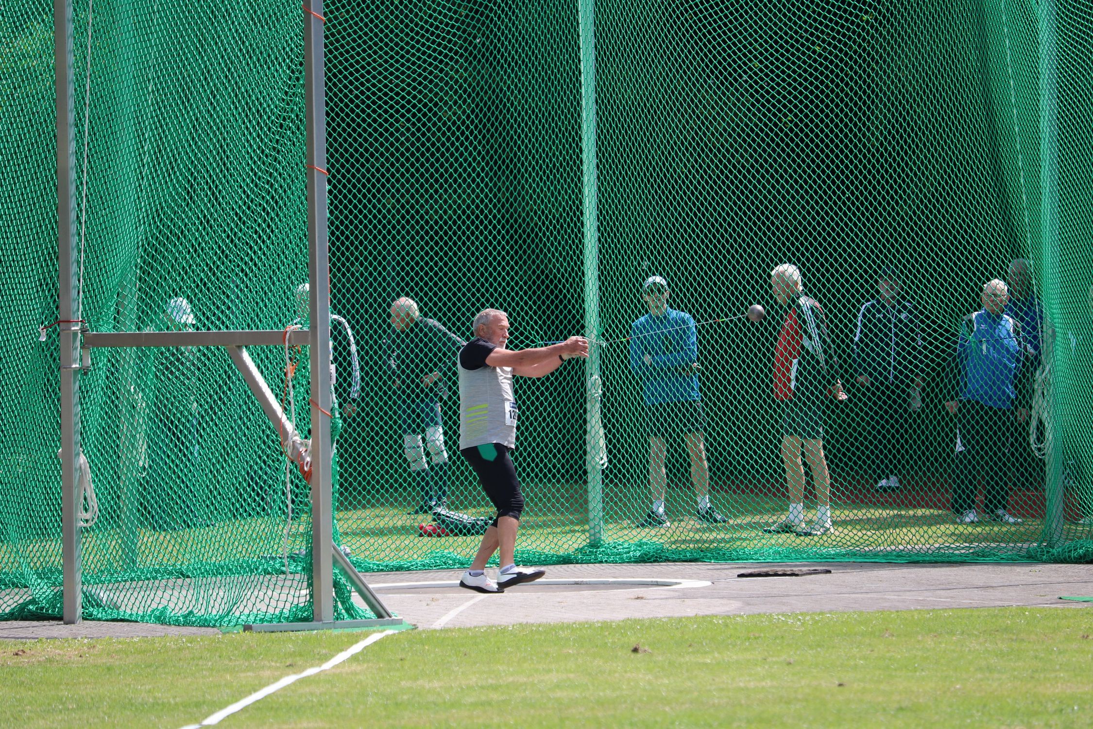 Noch nicht ganz rund lief es für Natascha Wolf von der LG Baar zu Beginn des ersten Tages im Kugelstoßwettbewerb der W 45. Mit 8,81 Meter verpasste sie knapp einen Medaillenplatz und wurde Vierte. In den anderen drei Wurfdisziplinen setzte sie gekonnt ihre technischen Fähigkeiten unter Beweis. Im Hammerwerfen drehte sie das vier Kilogramm schwere Gewicht trotz des eher stumpfen Rings auf ansehnliche 38,46 Meter. Im Diskuswerfen schob sie sich durch 31,41 Meter im letzten Versuch an die Spitze des Feldes. Überraschend schleuderte sie im Speerwerfen, das nicht zu ihren Paradedisziplinen zählt, das Gerät auf 26,27 Meter und sicherte sich mit knappem Vorsprung ihren dritten Titel.