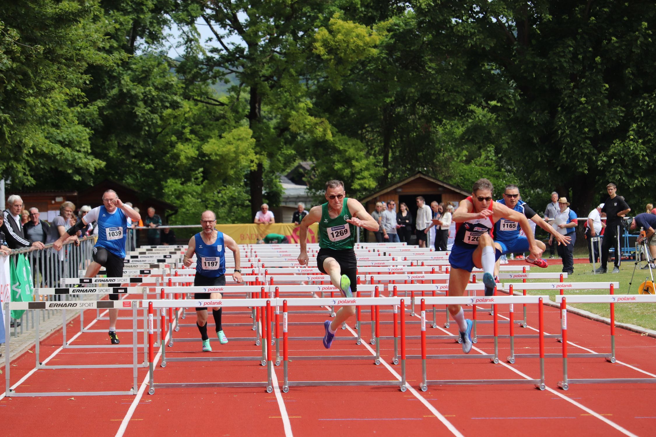 In der Männerklasse M 40 katapultierte Jan Jurkoweit vom LC Breisgau die Kugel auf starke 14,59 Meter. Tobias Bühner von der LG Staufen holte sich in den anderen Wurfdisziplinen dieser Klasse einmal Silber und zweimal Gold. Eine Klasse für sich war in der M 45 David Kiefer vom TV Bad Säckingen. Er gewann souverän die 400 Meter in 58,97 Sekunden und legte 2:17,79 Minuten über die doppelte Strecke nach. Seinem Tempo über die 1500 Meter konnte kein Konkurrent auch nur annähernd folgen. 4:28,02 Minuten standen für ihn zu Buche. Titel Nummer vier brachte ihm der 400 Meter Hürdenlauf in einer Zeit von 66,63 Sekunden.