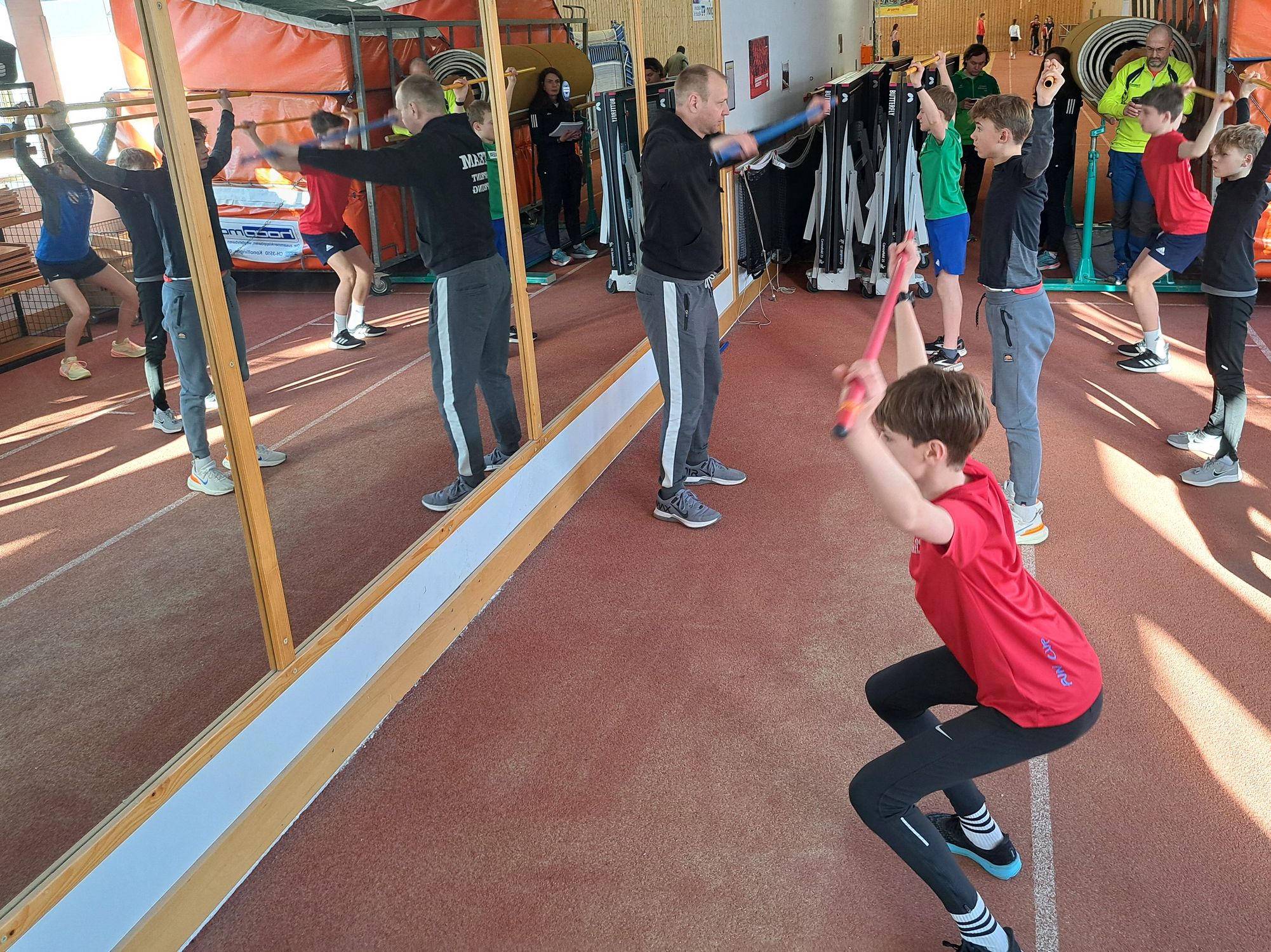 Anstrengend war das auf Grundlagentraining ausgerichtete Trainingsprogramm aber auch für die jungen Athlet:innen. Kräftigung in vielfältiger Form, Turnen, Mobilisationstraining und Spielen ergänzten das Techniktraining. Ganz zu schweigen von der Fußgymnastik beim „Wacht auf, Füße“ morgens um halb acht ;-)