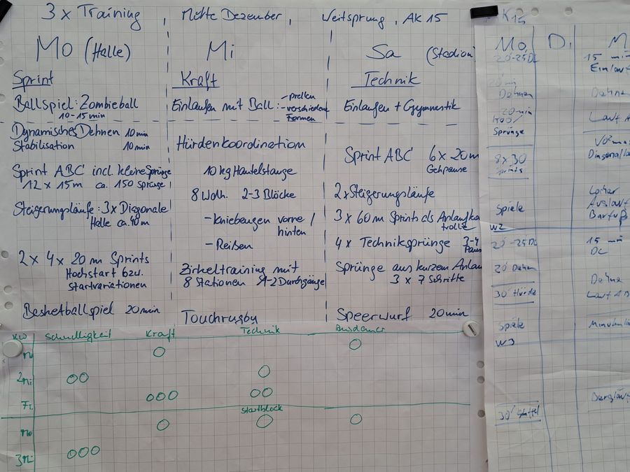 Im Workshopteil wurde über die Belastung diskutiert und zusammen mit Cathleen Tschirch, Jennifer Klein und Tom Jäger (in Vertretung des erkrankten Christoph Thürkow) Trainingswochen geplant. Daneben gab es auch noch Vorträge über das richtige Heben als Teil des Krafttrainings, über Starts und Beschleunigung sowie über die Gestaltung des Weitsprung-Anlaufs (Volker Zahn). Um die ganze Zeit über neben dem Training auch für Fragen der Vereinstrainer „erreichbar“ zu sein, unterstützte Nils Wlasak den Sprintbereich. Der Austausch abends in der Sportlerklause ergänzte das Programm in einem gemütlichen Abschluss.